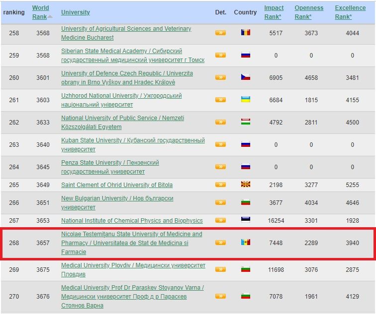 It should be mentioned that Nicolae Testemitanu University holds the leading position at the country level in the Webometrics ranking starting from July 2022.