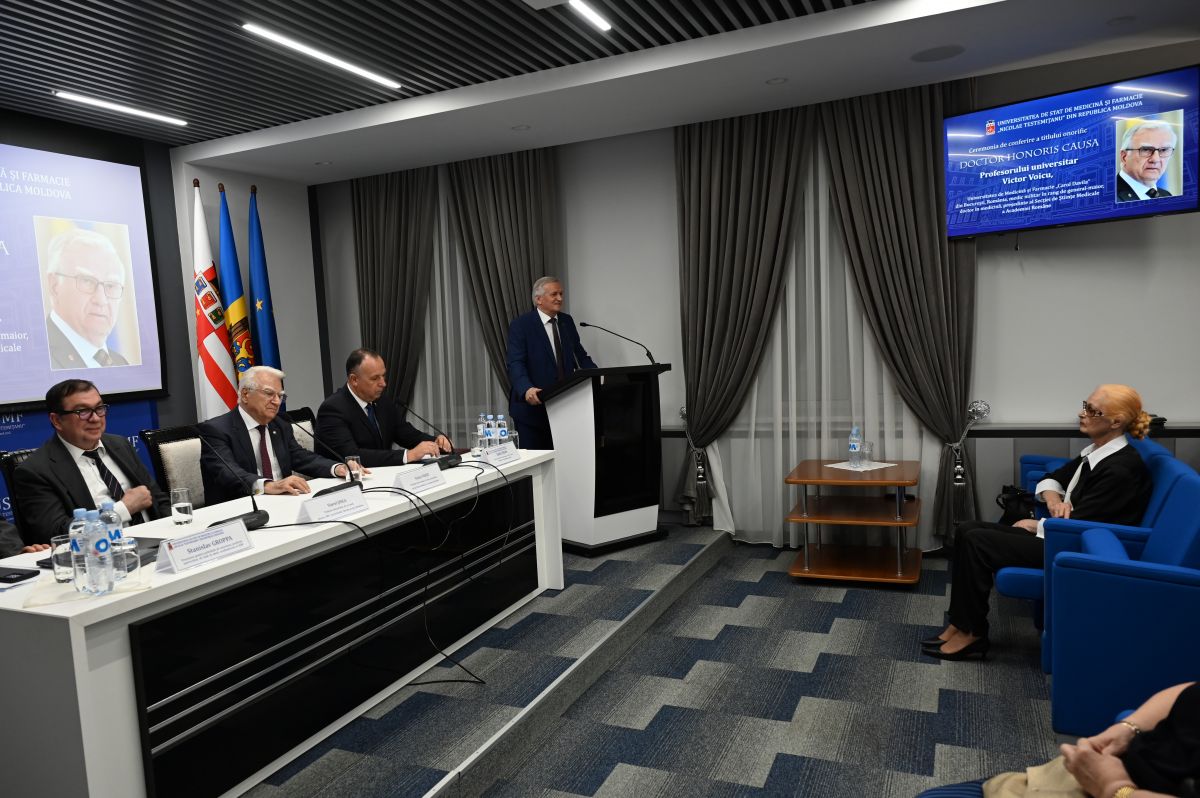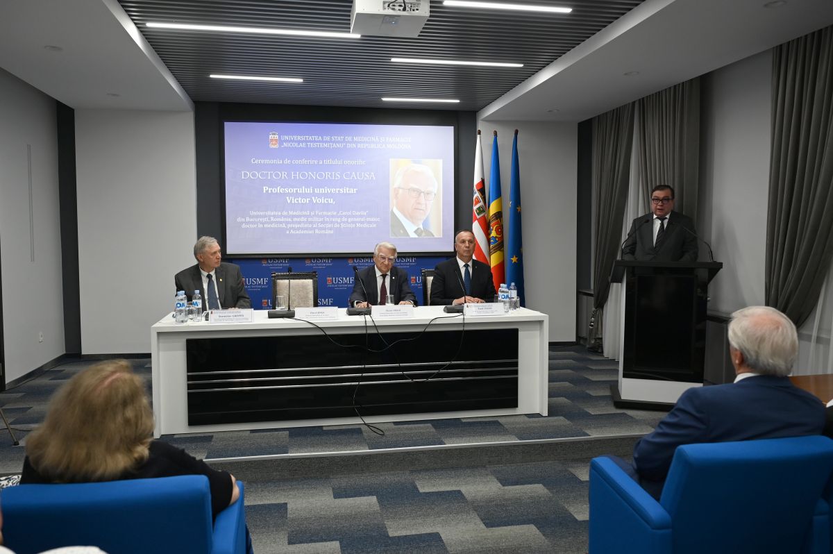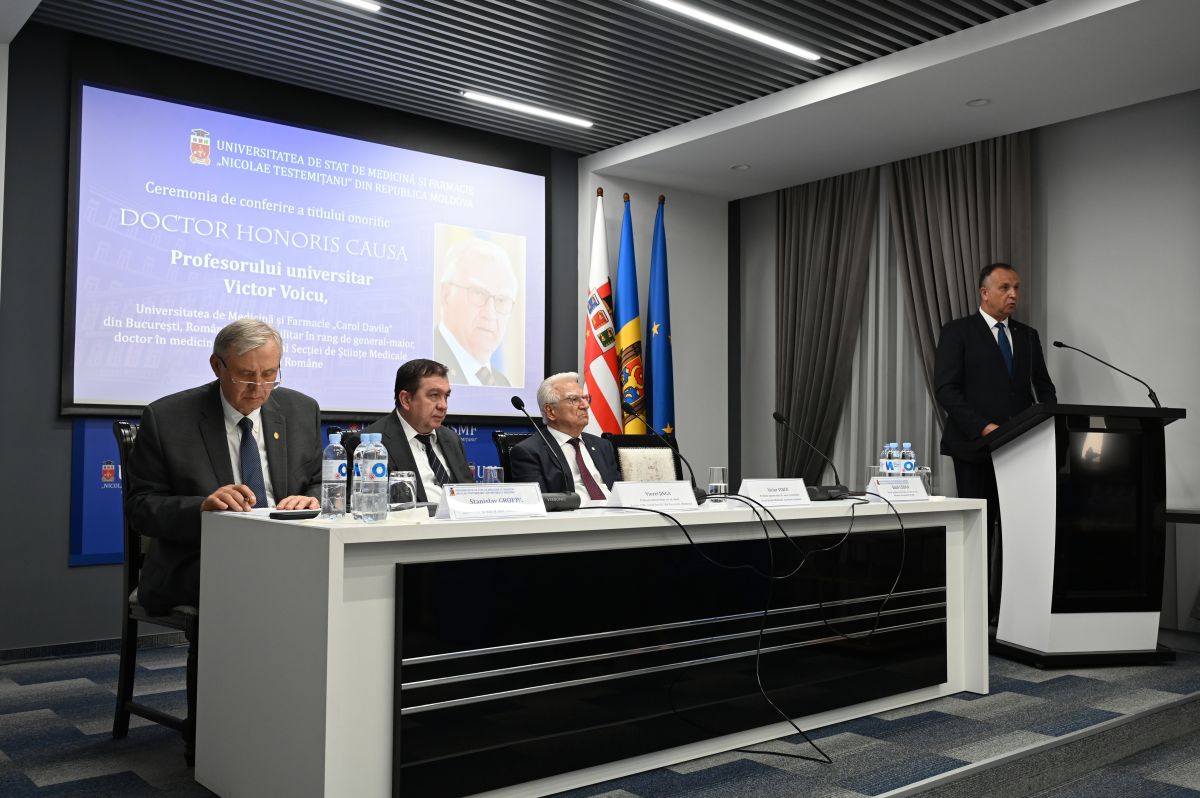 Nicolae Testemitanu State University of Medicine and Pharmacy of the Republic of Moldova awarded the Doctor Honoris Causa honorary title to university professor Victor Voicu, military doctor in the rank of major general, Doctor of Medicine, former head of the Department of Pharmacology, Toxicology and Clinical Psychopharmacology of Carol Davila University of Medicine and Pharmacy in Bucharest, Romania, president of the Medical Sciences Division of the Romanian Academy.